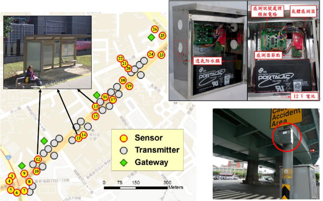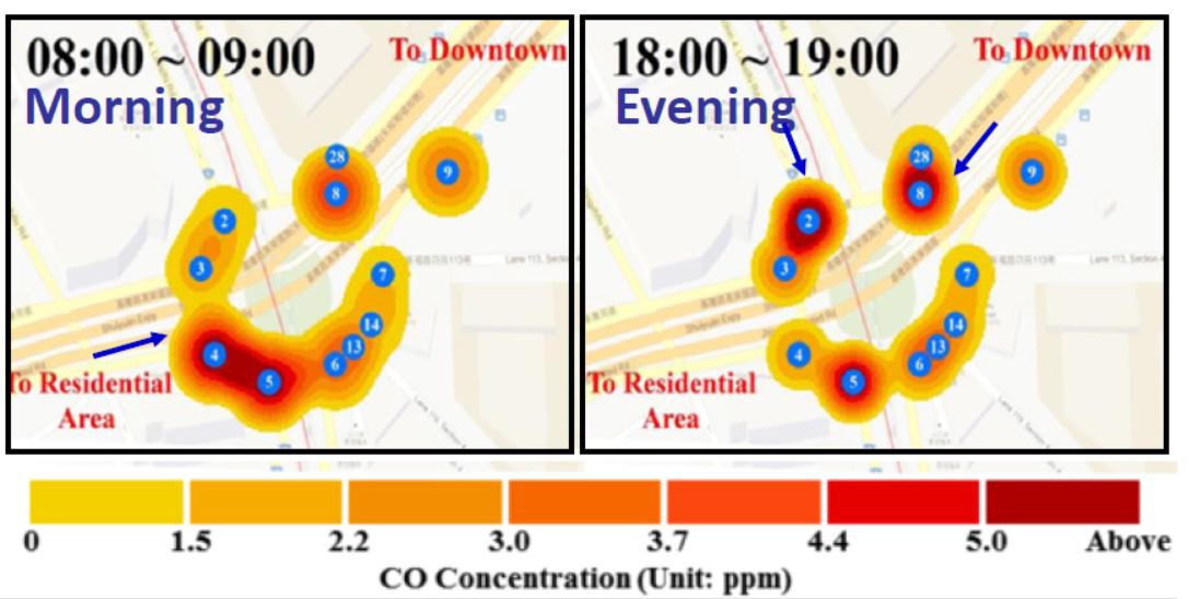 changes of carbon monoxide (CO) in urban settings. The system consists
